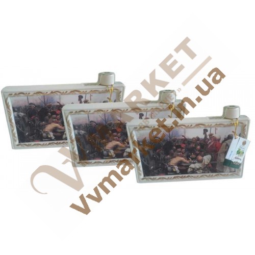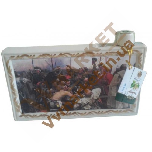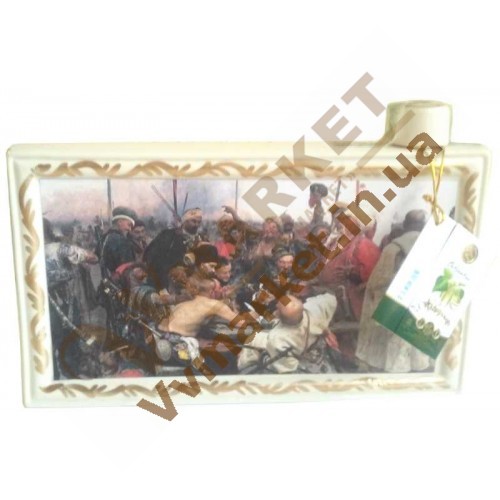 Классический украинский сувенир в виде знаменитой картины "Козаки пишут письмо турецкому султану", с классической водкой Житомирская на бруньках в объеме 1,0л.