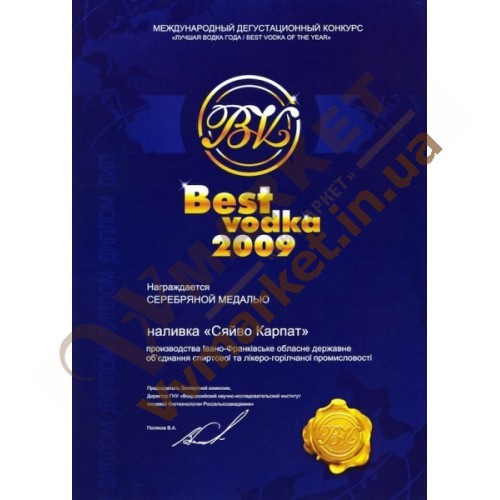 Наливка «Сяйво Карпат» нагороджена срібною медаллю на міжнародному дегустаційному конкурсі «BEST VODKA 2009»