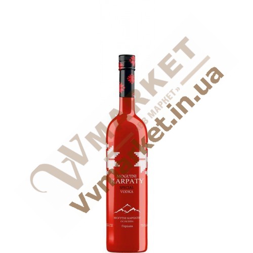 Водка премиум класса Могутні КарпатиMOGUTNI KARPATY SPECIAL изготовлена из кристально чистой воды и высококачественного спирта сорта «Люкс», смягченного натуральным мёдом с добавлением ароматных спиртов липы и эфирного лимонного масла, что придает водке неповторимый изысканный вкус. Водка "Могутні Карпати особая" является олицетворением силы и чистоты природных источников Карпатских гор.