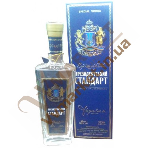 Водка элит-класса Президентський стандарт "Украина" 38% имеет особый вкус в лучших традициях классических водок и обладает исключительной мягкостью. Изготавливается из высококачественного зернового спирта "Люкс", очищенной природной минеральной воды и натуральных компонентов по классической технологии украинских водок. Неповторимый вкус и мягкость «Президентського стандарта» достигаются за счет особой технологии и специальных добавок.