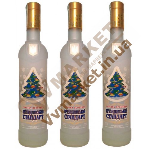 Водка Президентский Стандарт новогодний - водка элит-класса. Имеет особый вкус в лучших традициях классических водок и обладает исключительной мягкостью. Изготавливают водку в лучших традициях классического алкоголя - используют высококачественный зерновой спирт, очищенную природную минеральную воду и натуральные компоненты по классическому методу украинских водок. Неповторимый вкус и мягкость «Президентский стандарта» достигаются за счет особой технологии и специальных добавок. «Президентский стандарт» - официальная водка государственных и международных мероприятий, проводимых на высшем уровне в Украине.
